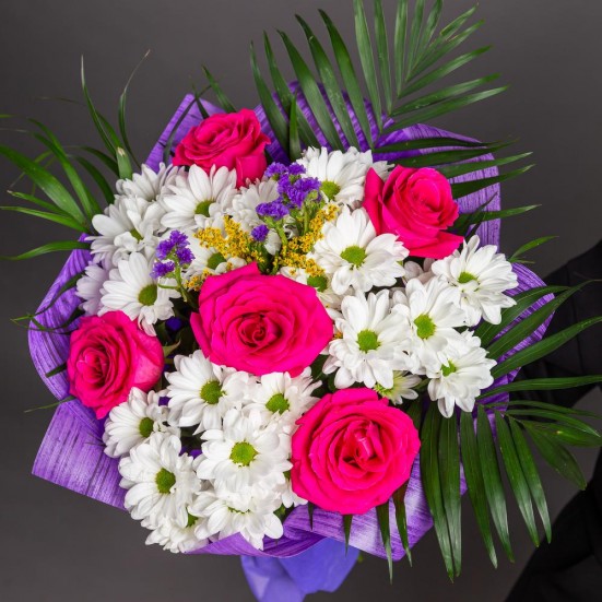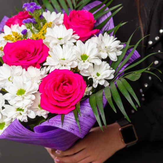 Решила сделать себе подарок и заказала этот букет. Доставка была сделана во время. Надежный магазин