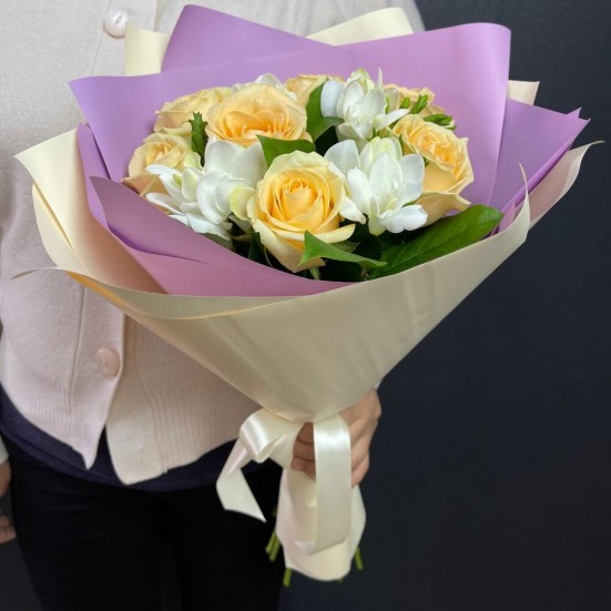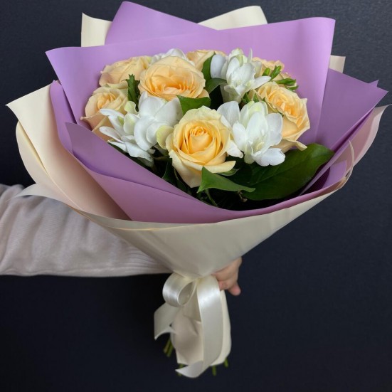 Классный и огромный букет. Очень нежный. Заказывала маме с папой на их годовщину свадьбы. Понравился, доставили в срок. Мама говорит, что потом еще неделю дома стоял как будто только срезаны цветы.
